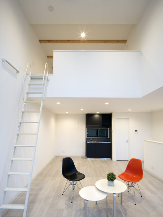 - キッチン(IH)、シャワーブース、室内洗濯機置場、トイレ(2ヶ所)、給湯、TVモニターホン、電動シャッター、ロフト、バルコニー、屋上