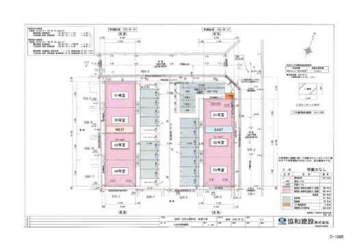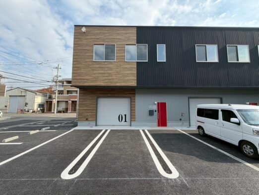 1階倉庫、2階事務所の人気タイプで、各区画前面空地に3台の駐車も可能です。