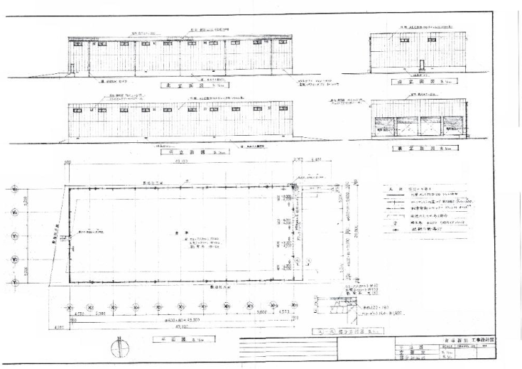 - 鉄骨造亜鉛メッキ鋼板葺・平屋建倉庫・地上2階建事務所