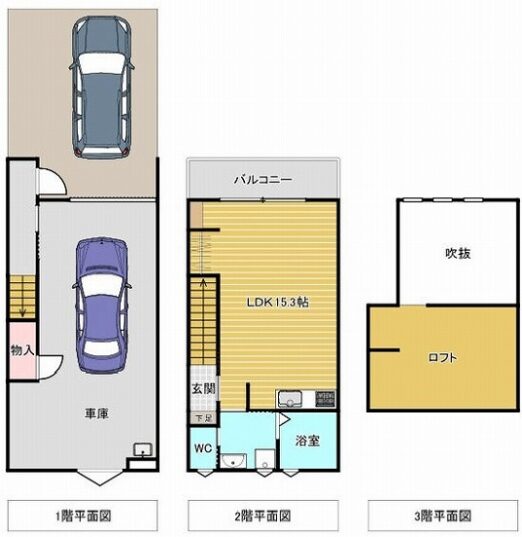 - 給湯機、ガスコンロ(3口)、システムキッチン、風呂、トイレ、洗面台、ロフト、インターホン(カメラ付き)